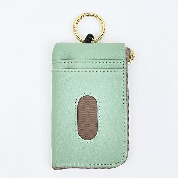キーホルダーが付いた便利なポーチ。裏側にはカードが2枚入り、ホルダー部分が伸びるので、カバンに付けたままで改札を通れちゃいます♪