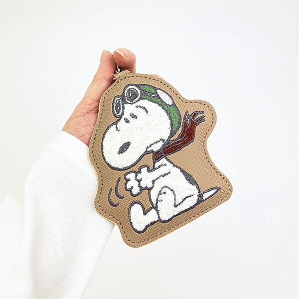 スヌーピー ダイカット刺繍パスケース ベージュ SNOOPY