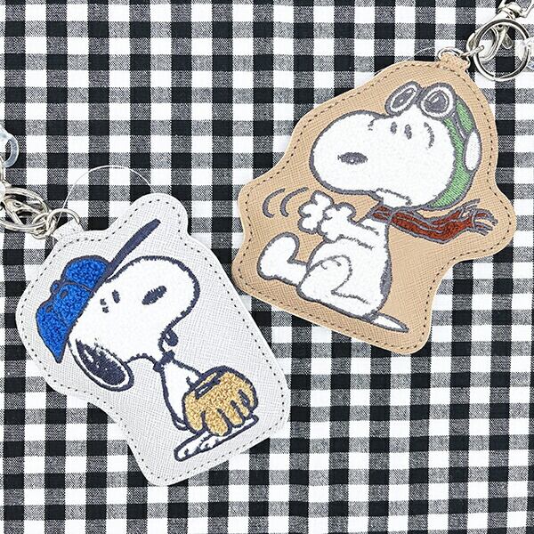 スヌーピーのダイカットパスケースです。サガラ刺しゅうがとってもキュート♪バッグなどに付けられて、サッと出せてgood♪
