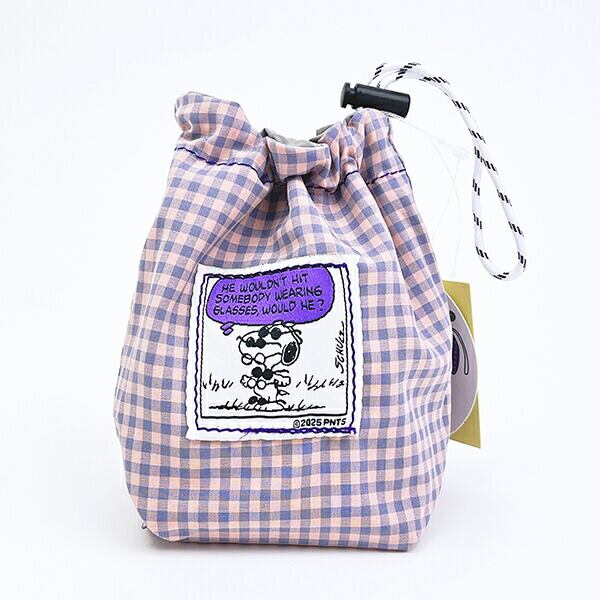 スヌーピー チェック リバーシブル巾着ポーチ グレー SNOOPY