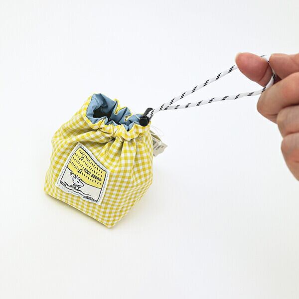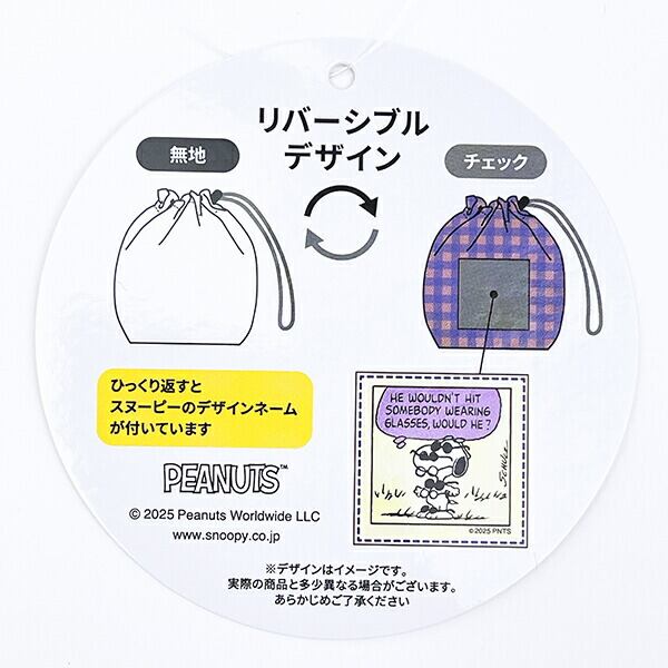 スヌーピー チェック リバーシブル巾着ポーチ ブルー SNOOPY