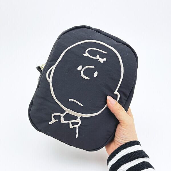 スヌーピー チャーリーブラウン フェイスポーチ ブラック SNOOPY