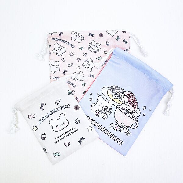はなまるおばけの3P巾着です。用途に合わせて使い分けられて◎旅行時など便利に使っていただけます♪細かいものを分けて収納できるのが嬉しいポイントです☆彡【サイズ】大:23cm×18cm、中:19cm×15cm、小:15cm×12cm