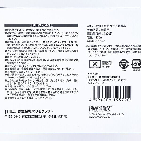 スヌーピー ダブルウォール耐熱グラス コップ バゲットシェフ SNOOPY
