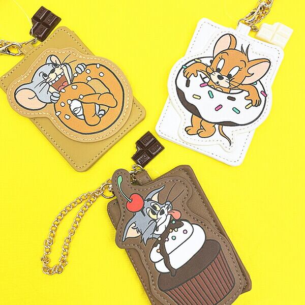 トムとジェリーのスイーツとキャラクターのイラストがキュートなパスケースです。チョコレートのチャームも本物みたいで美味しそう♪バッグに下げられる便利なチェーン付きがgood♪ぜひ同シリーズのアイテムで揃えてみてください☆彡
