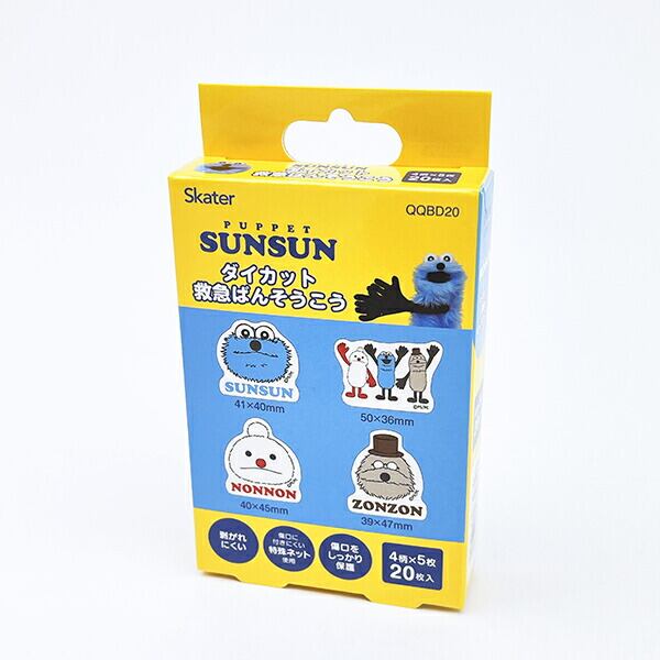パペットスンスンの形がとってもかわいいダイカット絆創膏です。ポップでかわいいキャラクター絆創膏♪柄ごとに形が違って楽しいので小さいお子様も喜ぶこと間違いなしです♪はがれにくく、傷口をしっかり保護してくれるのでぜひパパ、ママさんはバッグにinしてみてください☆彡【セット内容:20枚入り(4柄×5枚)】【最大サイズ:50mm×47mm(柄によってサイズが異なります。)】