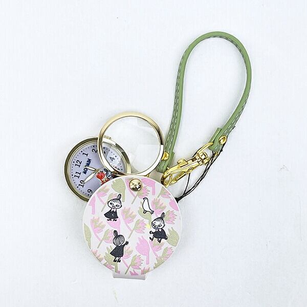 小さな文字はルーペで拡大できるハングウォッチです。見やすい文字盤で真ん中には可愛いリトルミイのイラスト入り◎時計を見ない時は付属のポーチに閉まっておける♪お気に入りのカバンやリュックに付けて一緒にお出かけしませんか♪同シリーズもございますので揃えてみませんか♪【サイズ】ポーチサイズ:約55mm、ストラップ全長:約160mm