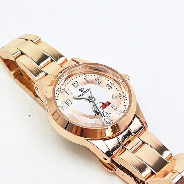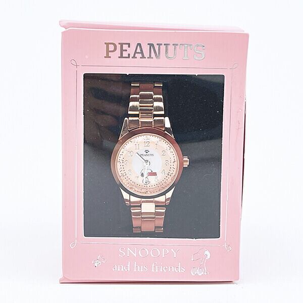 スヌーピー お皿とスヌーピー メタルウォッチ (ピンク×ホワイト) 腕時計 SNOOPY