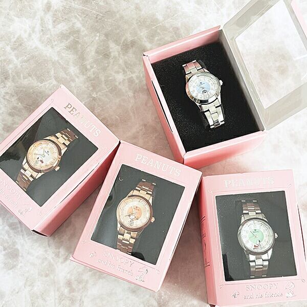 使いやすいPUSHタイプのスヌーピーのメタルウォッチです。高級感のあるデザイン★文字盤にはかわいいスヌーピーがプリントされています!どんなスタイリングにも合わせやすく、普段使いにぴったりです♪専用の箱付きなので新社会人のプレゼントにもおすすめです!【サイズ】ベルト全長:約24mm、ベルト幅:約12〜10mm、最小手首周り:約150mm