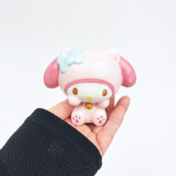 優しくかわいい女の子キャラクターのマイメロディ♪マイメロが招き猫になったデザインの置物です!W7.5×D6.5×H8.5cmのコンパクトサイズで、棚や玄関などに飾りやすい仕様。淡いピンクに包まれた柔らかな表情が魅力で、空間に可愛らしさと癒しをプラスします♪つるんとした質感の陶器が上品に輝き、インテリア雑貨としても優秀◎ギフトにもおすすめです☆