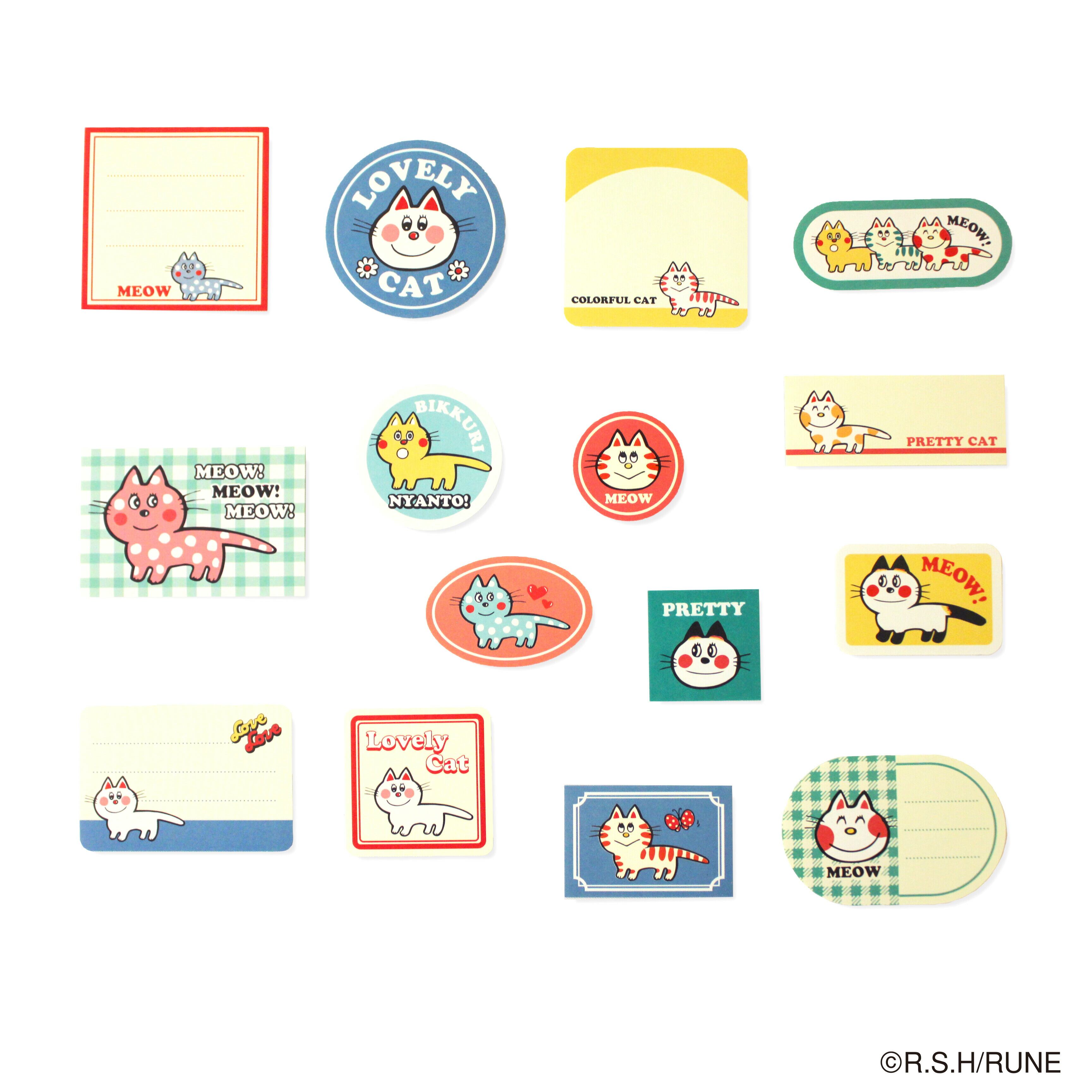 内藤ルネ フレークシール カラフルキャット 文具 ステッカー
