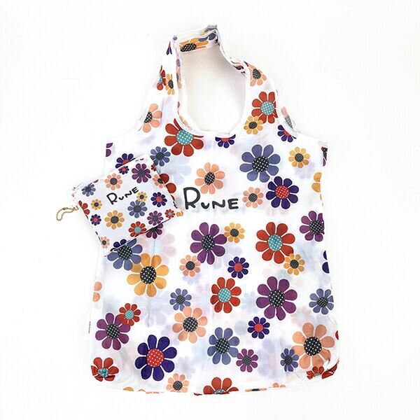 内藤ルネ エコバッグ サンフラワー ホワイト 折りたたみバッグ 買い物袋 マルシェバッグ