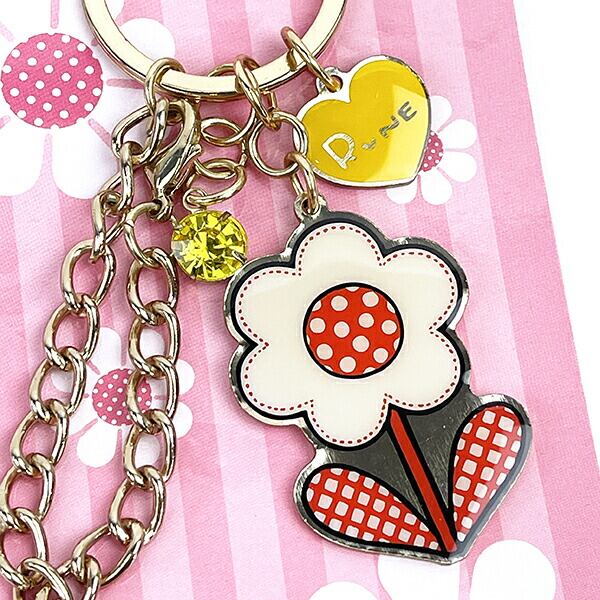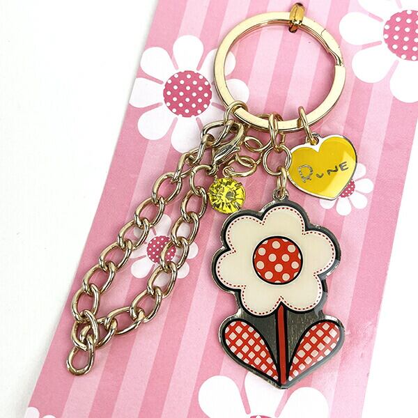 内藤ルネ チャーム フラワーホワイト キーホルダー バッグチャーム