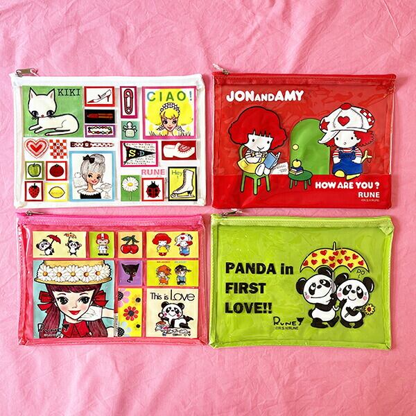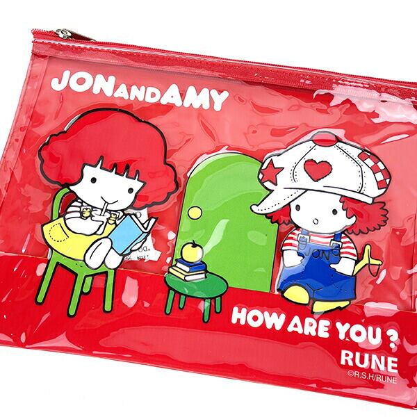 内藤ルネ ビニールポーチ JON&AMY 小物入れ 化粧ポーチ ペンポーチ クリア素材