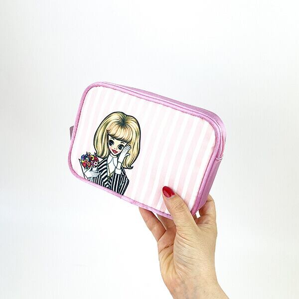 内藤ルネ ポーチ パイピンストライプ ボックス 小物入れ 化粧ポーチ