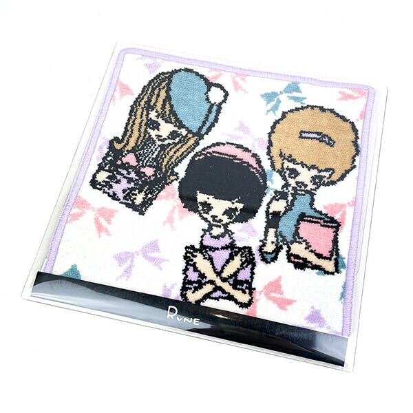 内藤ルネ タオルハンカチ 3人の少女 ホワイト シェニール織り
