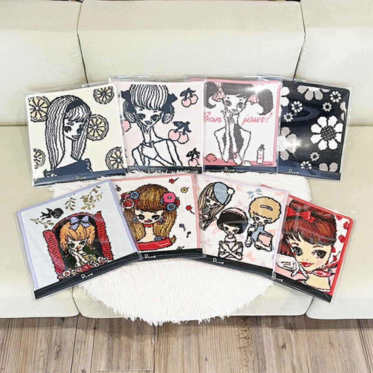 今では当たり前の”カワイイ”文化。それの先駆けとなったイラストレーターが内藤ルネです。それまでとまったく印象の違う、”元気でカワイイ”女の子を広めました。他にもカワイイキャラクターや、モチーフがたくさん♪クリアケースに入っているのでそのまま飾ったり、ギフトにも◎プリントではなく、織りでイラストを表現しているところがポイントです♪