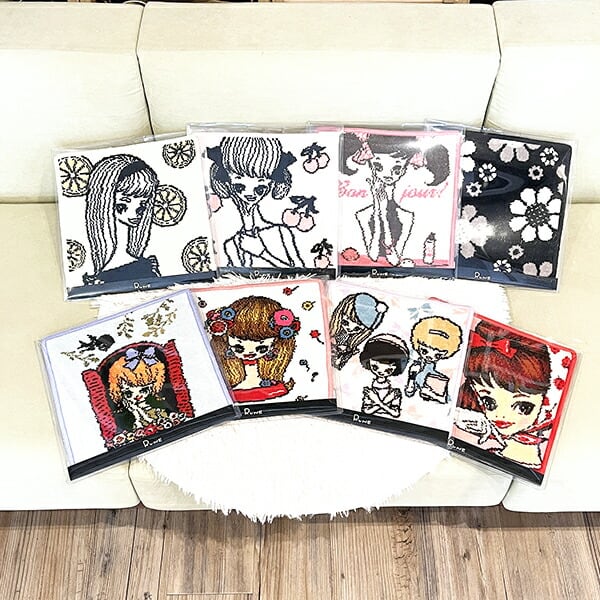 今では当たり前の”カワイイ”文化。それの先駆けとなったイラストレーターが内藤ルネです。それまでとまったく印象の違う、”元気でカワイイ”女の子を広めました。他にもカワイイキャラクターや、モチーフがたくさん♪クリアケースに入っているのでそのまま飾ったり、ギフトにも◎プリントではなく、織りでイラストを表現しているところがポイントです♪