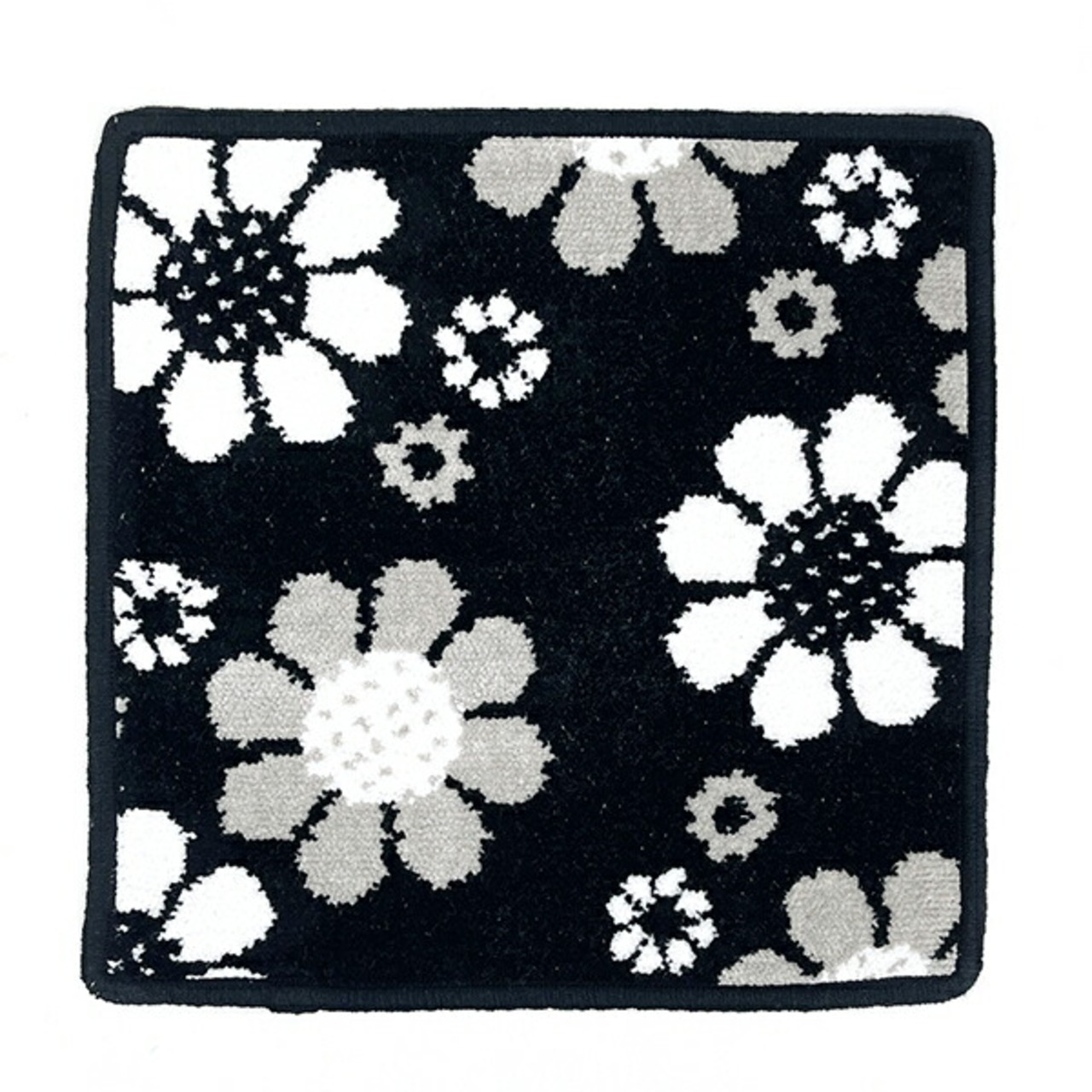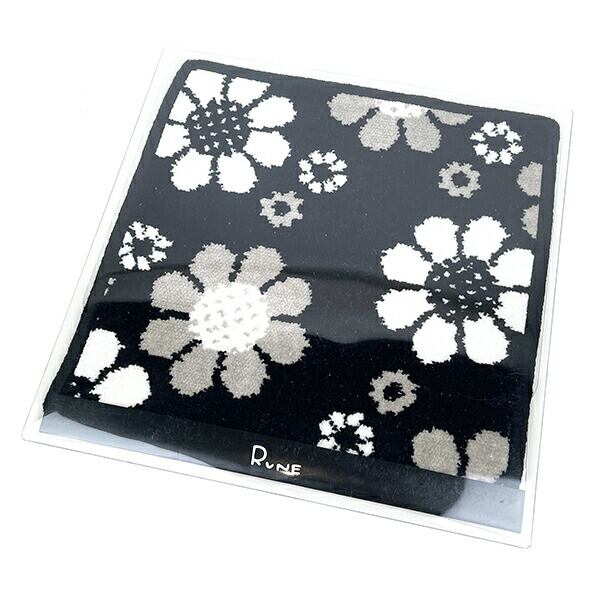 内藤ルネ タオルハンカチ モノトーンフラワー ブラック シェニール織り