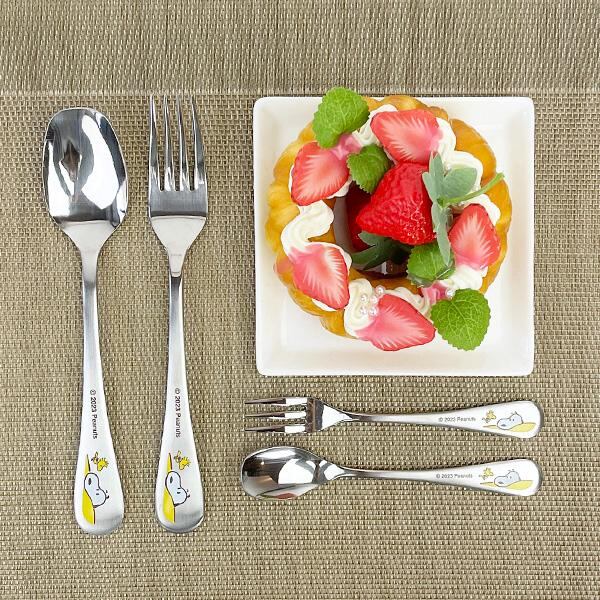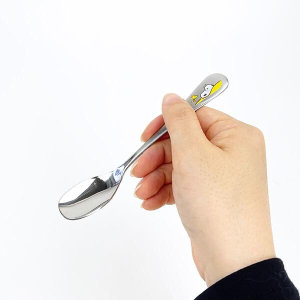 丈夫でお手入れのしやすいステンレス製のスヌーピーのカトラリー。デザートやティータイムにピッタリな小サイズのスプーン。安心の日本製◎