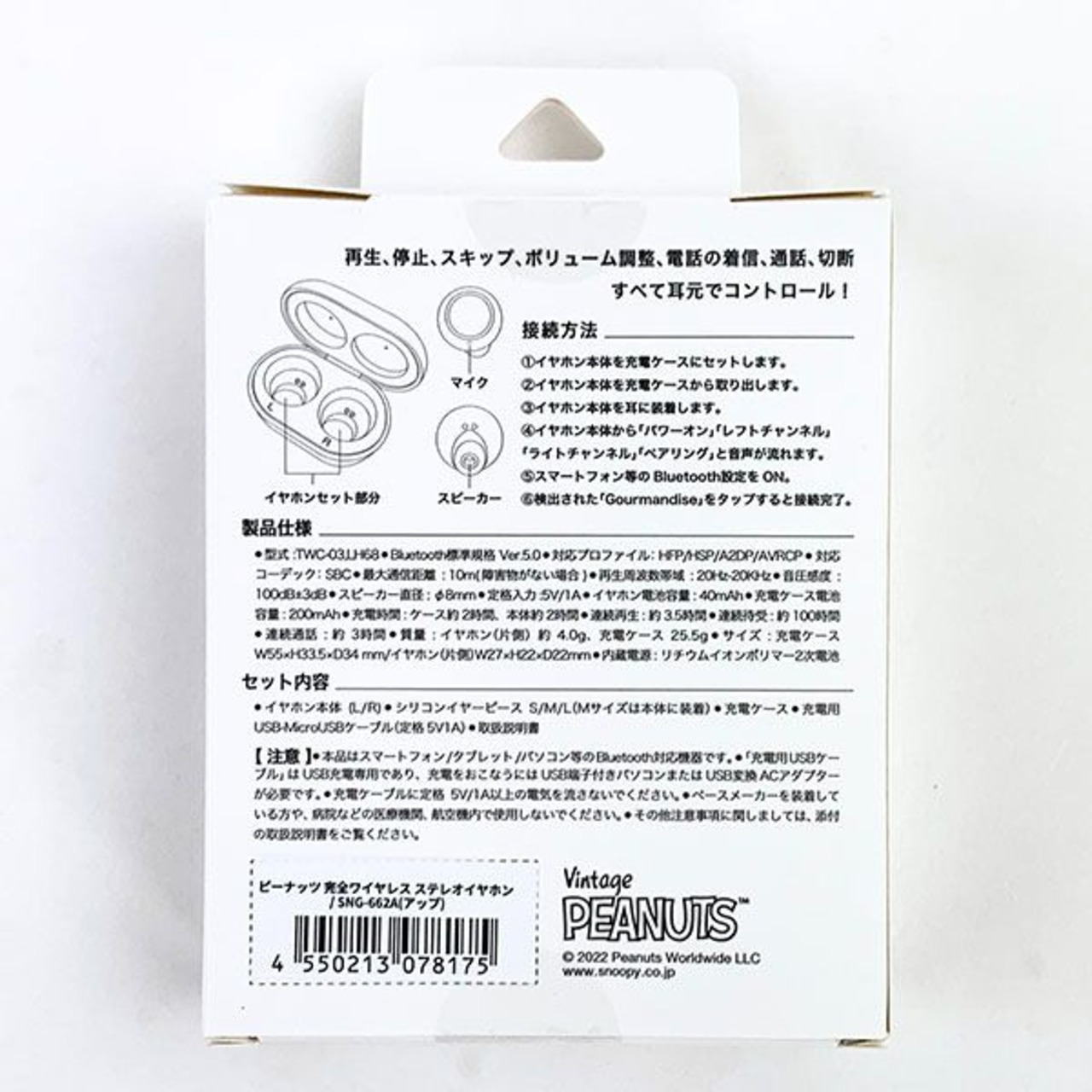 スヌーピー PEANUTS 完全ワイヤレス ステレオイヤホン アップ ワイヤレスイヤホン Bluetooth ホワイト