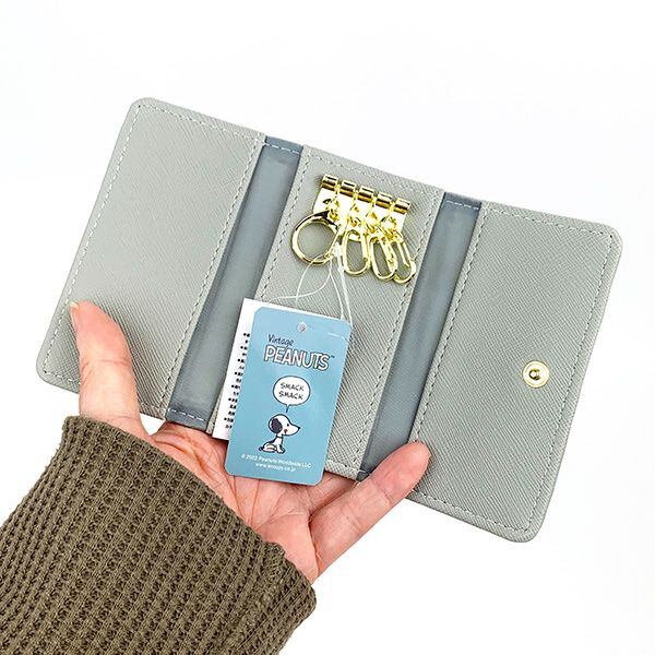 スヌーピー キーケース デスク刺繍 PEANUT 鍵ケース グレー マリモクラフト