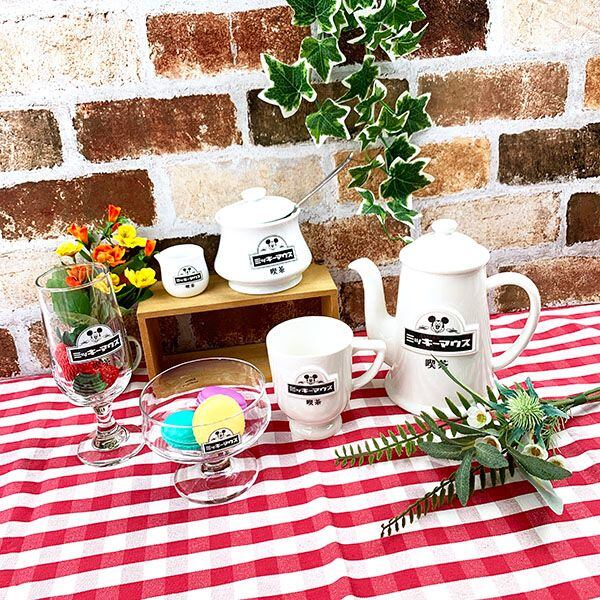 流行りの”レトロ”、”喫茶店”でミッキーシリーズが出ました!!形も昔の喫茶店にあったデザインで、揃えたらとっても素敵なティータイムに♪容量270?