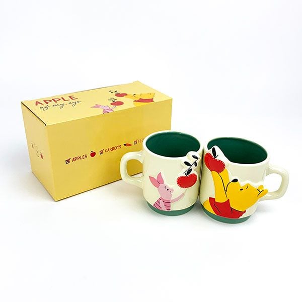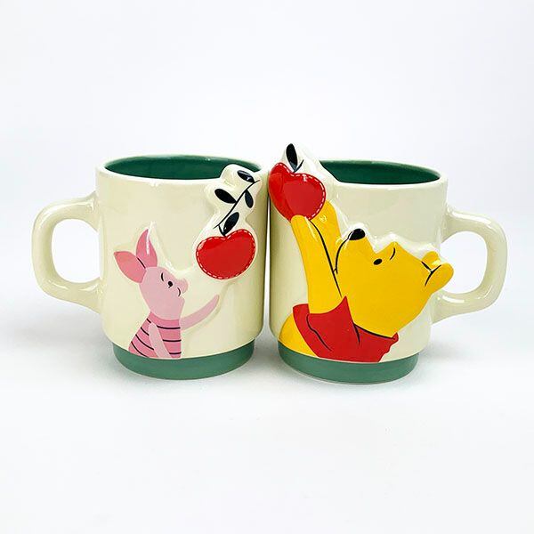 真っ赤なリンゴに手を伸ばすプーさんとピグレットが可愛いデザイン。左にピグレット、右にプーさんと、キャラクター同士を横に並べるようしてマグを置くと、絵柄がつながります!大好きなあの人とシェアして使っちゃいましょう!