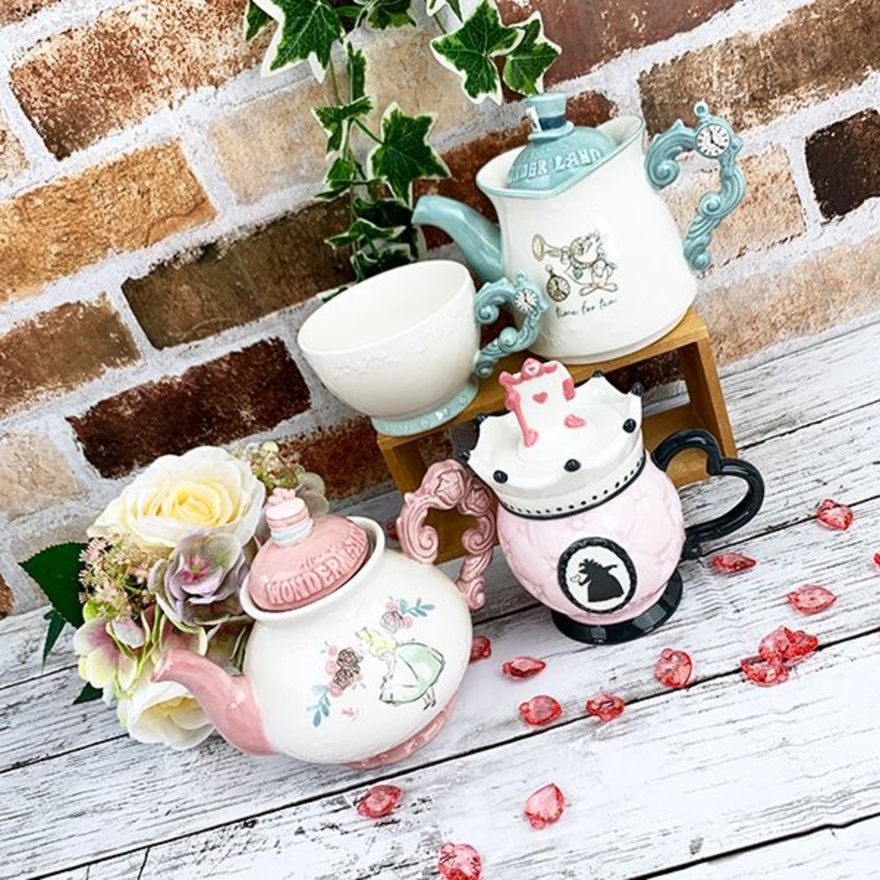 不思議な国のアリスからかわいいティーポットが登場しました。お家時間のティータイムを少しでもオシャレに!フタが付いているので、中に飴やちょっとした物をいれてお部屋に飾るのもいいですね♪珍しいデザインで箱入りなので、ホワイトデーや誕生日、クリスマスなどのプレゼントにもピッタリです。別売りのマグカップと使うと可愛さ倍増!弊社のギフトラッピングもご一緒にどうぞ☆
