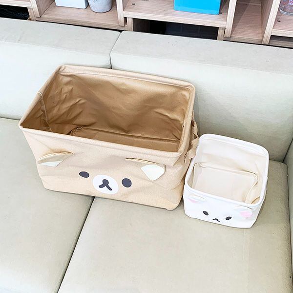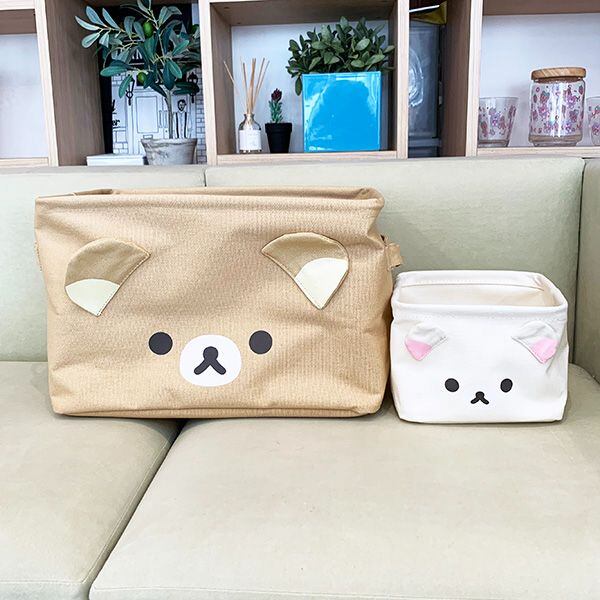 リラックマのフェイスデザインがかわいいマルチボックス。ハンドル付きでカラーボックスにぴったりなサイズ感です♪ブランケットやおもちゃの収納に♪