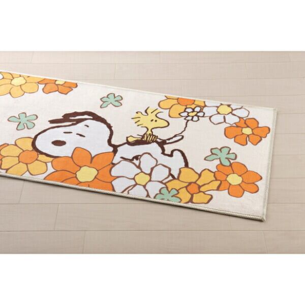 スヌーピー 花いっぱい ロングマット【45×240cm】 オレンジ キッチン SNOOPY