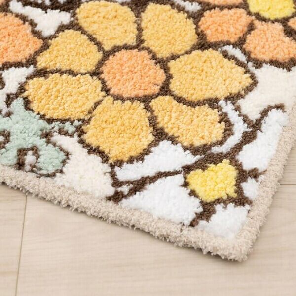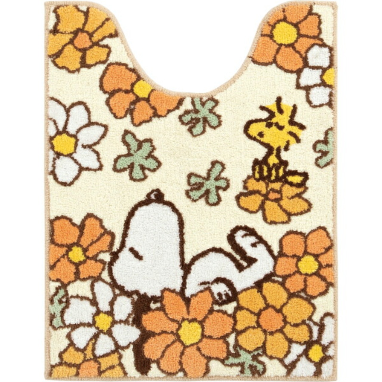 スヌーピー 花いっぱい ロングトイレマット オレンジ SNOOPY