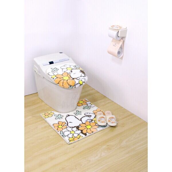 スヌーピー 花いっぱい 兼用トイレフタカバー オレンジ 便座カバー SNOOPY