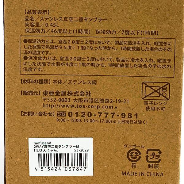 mofusand もふさんど 2WAY真空二重タンブラーM(えび天にゃん) 450ml コップ キッチン