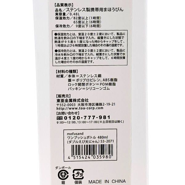 mofusand もふさんど ステンレスワンプッシュボトル 480ml (ダブルえび天にゃん) 水筒 キッチン
