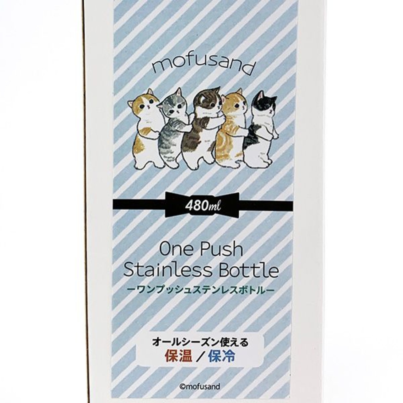もふもふな猫のイラストがほっこりかわいい「mofusand」♪ワンプッシュタイプのステンレスボトルはワンプッシュでフタがオープンでき、片手で楽々操作できます◎もちろん安心安全のロック付き。真空二重構造なので、温かさも冷たさも長持ちして最後まで美味しい温度をキープします♪
