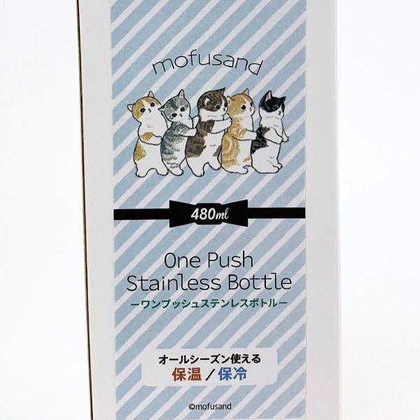 もふもふな猫のイラストがほっこりかわいい「mofusand」♪ワンプッシュタイプのステンレスボトルはワンプッシュでフタがオープンでき、片手で楽々操作できます◎もちろん安心安全のロック付き。真空二重構造なので、温かさも冷たさも長持ちして最後まで美味しい温度をキープします♪