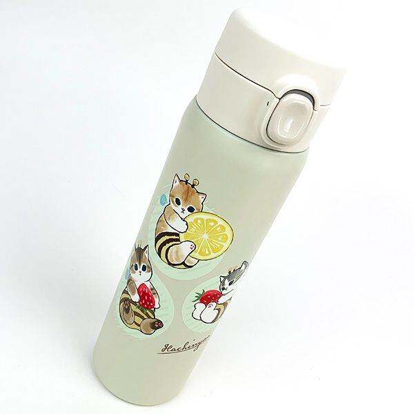 便利なワンプッシュボトルです。飲み口はせまくなっているのでこぼれにくい♪カワイイモフニャン達のイラストです!