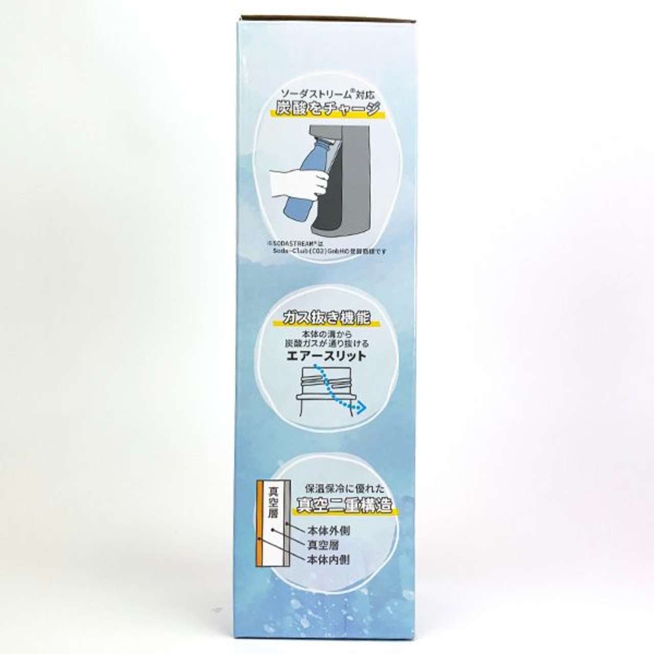 炭酸飲料を入れることができる保温保冷ステンレスまほうびん。容量は530mlで飲み口が細くなっているため、飲みやすい形状。また、家庭用炭酸水製造機にセットして炭酸をステンレスボトルに直接注入することができます。炭酸水製造機使用時は380ml容量をお守りいただくため、分かりやすいようステンレスボトル内瓶に給水ラインもございます。。