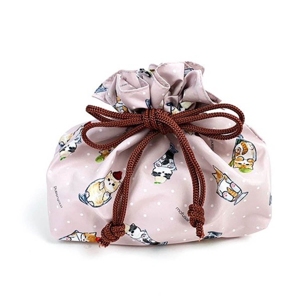 もふもふな猫のイラストがほっこりかわいい「mofusand」♪お弁当がすっぽり入る丁度良いサイズの巾着袋です!