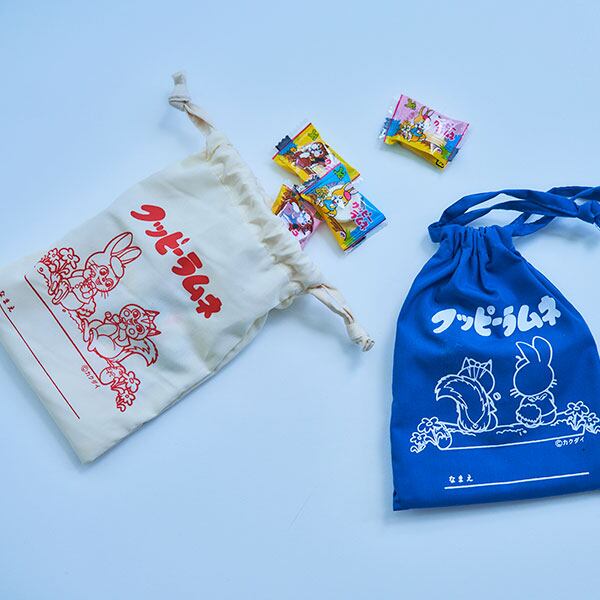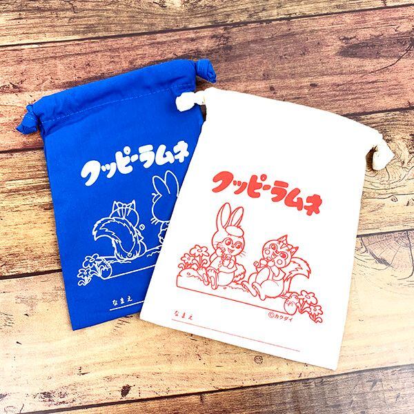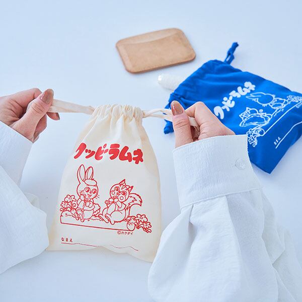 世代を越えて愛され続けるロングセラーの駄菓子「クッピー ラムネ」の巾着です。レトロデザインが大人可愛い!ほどよく収まる小さめなサイズ感の巾着袋。