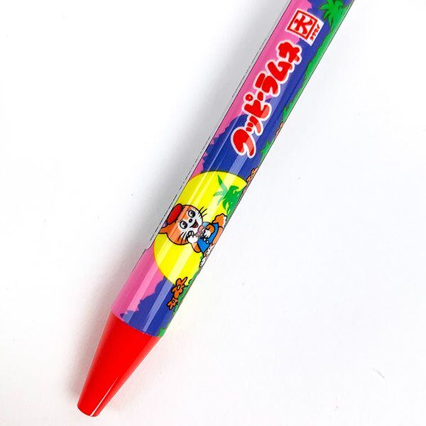 世代を越えて愛され続けるロングセラーの駄菓子「クッピー ラムネ」のボールペンです。ペンを出す度ラムネを食べちゃう!?動いて楽しいボールペン。