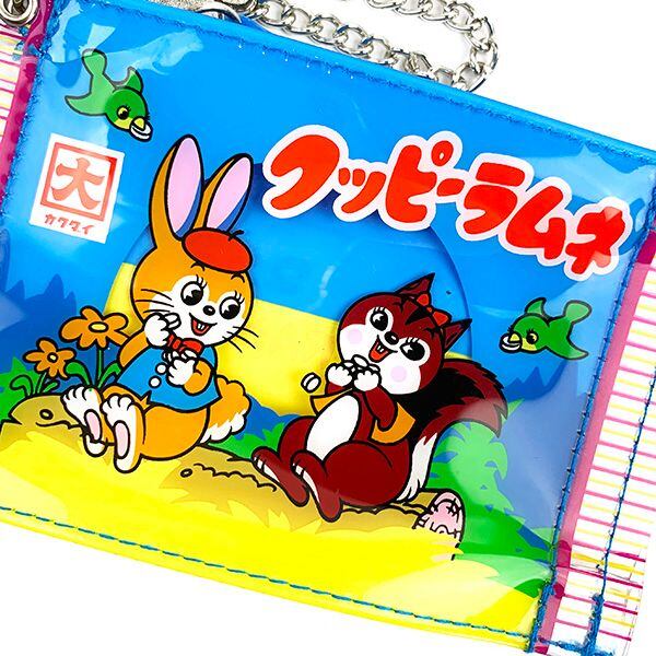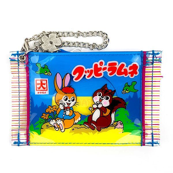 世代を越えて愛され続けるロングセラーの駄菓子「クッピー ラムネ」のパスケースです。トレンドのPVC素材でクッピーラムネの袋を再現。便利なチャックポケット付き。