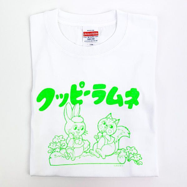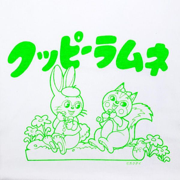 世代を越えて愛され続けるロングセラーの駄菓子「クッピー ラムネ」のTシャツです。トレンドのネオンカラーが目を引くプリントTシャツ。親子コーデにも♪サイズ(120):身丈47・身幅35・肩幅32・袖丈14cm/脇仕様:横割り仕様