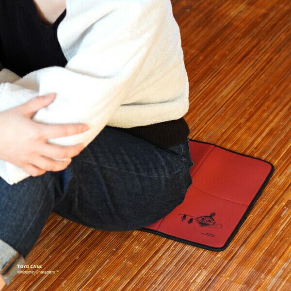 コンパクトに折りたたんで持ち運べるサウナマット☆クッション性があり、衛生的に快適にサウナを楽しめます☆また、洗濯機での水洗いが可能◎ 耐熱温度:100℃【ポーチサイズ:約横14.5cm×厚さ4cm×縦15.5cm】