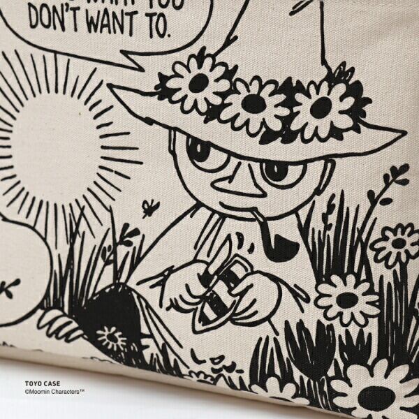 原画の筆跡が感じられるコミックスアートのプリントは、表と裏でテイストが違うので、その時の気分によって好きな面を楽しめます。ワイヤー入り開口部&内側コーティングで、本体がしっかり自立するので、モノの出し入れもしやすく、