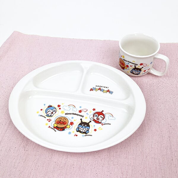 みんなの人気者!アンパンマンのなかよしシリーズの食器が登場です。お空の上で仲良く遊ぶシーンが楽しい♪♪初めてひとりでお食事が出来るようになったお子様にぴったりのアイテムです!電子レンジ&食洗機使用OK。