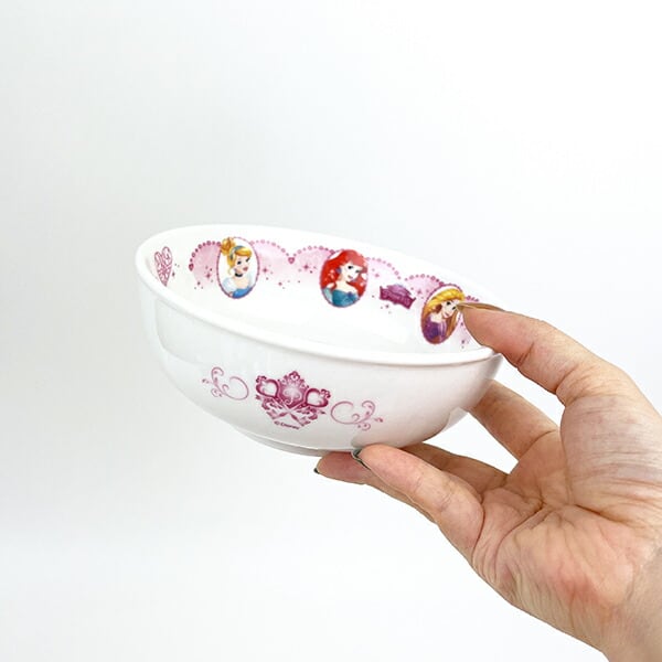 女の子の永遠の憧れ「ディズニープリンセス」のこども食器シリーズ。オーロラ、ベル、白雪姫、シンデレラ、アリエル、ラプンツェルの6人のお姫様が登場♪電子レンジOK、食洗機対応。