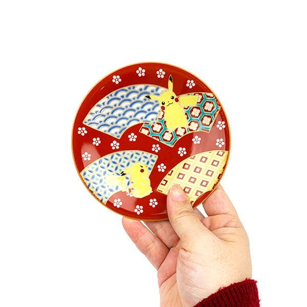 ポケットモンスター ピカチュウ 九谷焼小皿 金襴扇面小紋 食器 日本製 レッド