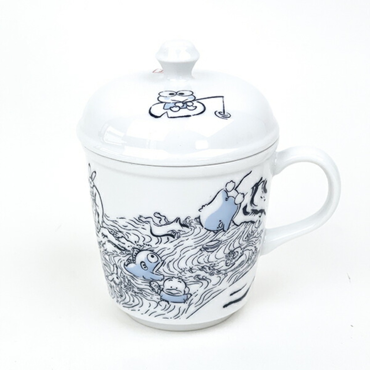 【ポチャッコ、タキシードサム、けろけろけろっぴ、バットばつ丸、ハンギョドン、あひるのペックル】個性あふれる6にんの男の子たちが『ハッピーになりたい男子たち、V字回復をねらう』という意味をこめたユニット「はぴだんぶい」を結成!!さまざまなチャレンジを通してみんなをちょっとハッピーにするよ☆ゆかいなキャラクターと伝統柄の鳥獣戯画がコラボしました!ハッピーになる器です♪食洗機・電子レンジ使用可◎【容量:260ml】【サイズマグ:85×85×80mm、フタ:85×85×4.5mm】
